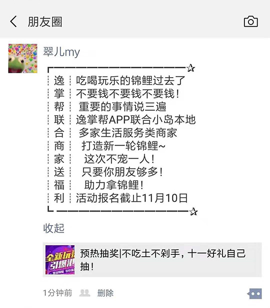 朋友圈轉(zhuǎn)發(fā)推文,再贈送門店抽獎1次