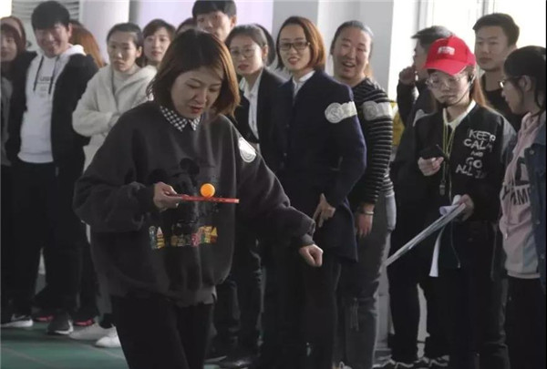 在比賽中隊友們相互鼓勵,相互配合。乒乓球接力不僅考驗隊員的速度、耐心,更考驗著隊員們團結(jié)協(xié)作的能力,以及彼此的默契程度?,F(xiàn)場游戲活動中,比賽氣氛和諧快樂,大家都被簡單的互動游戲所感染,一陣陣吶喊助威聲從運動場上傳來。